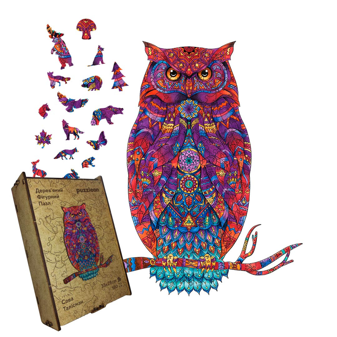 Дерев'яний пазл Сова Талісман, А5, Картонна коробка